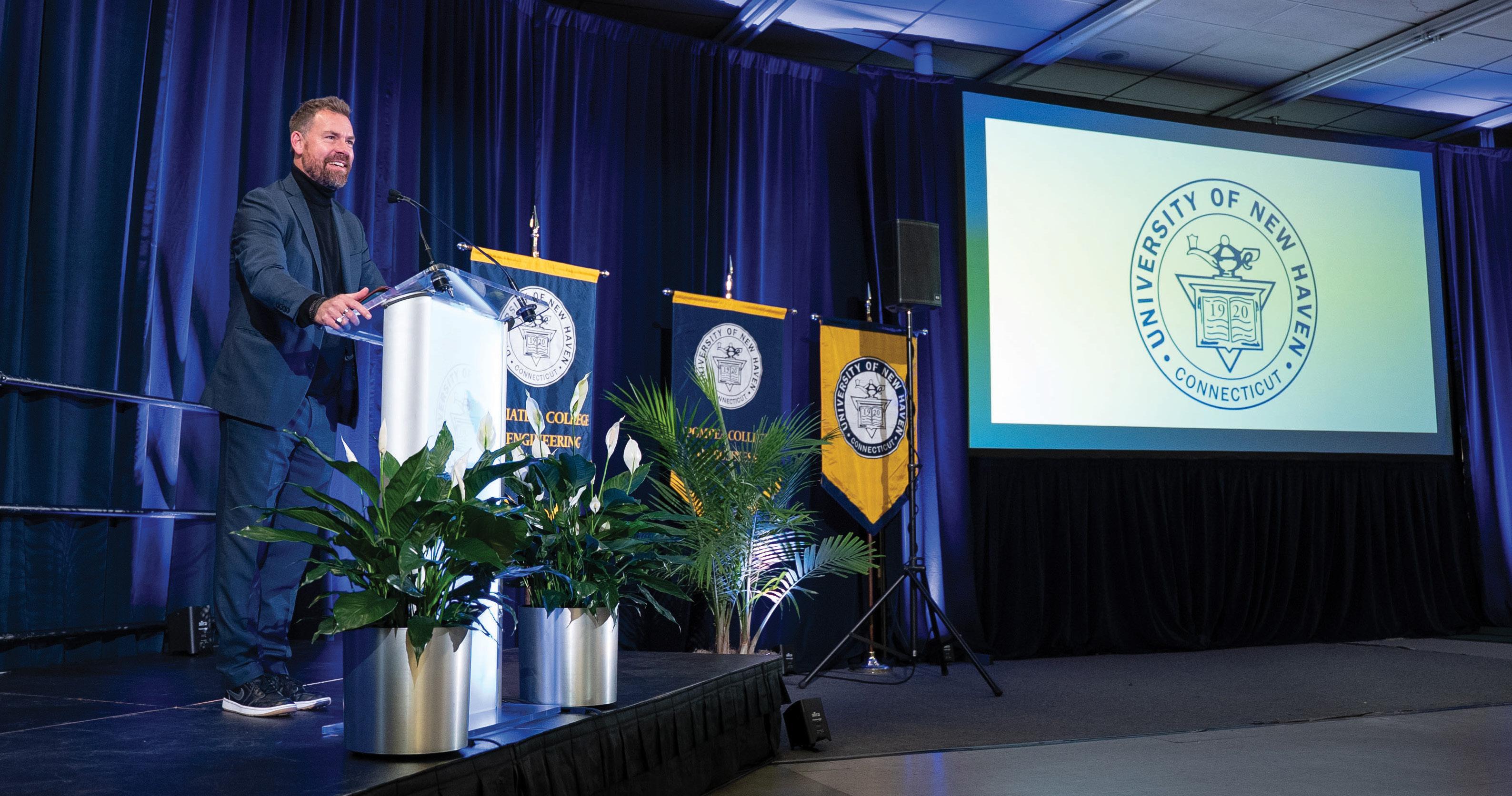 Which brings me to this issue of the University of New Haven Magazine. On the surface, it may appear to be about the tangible external: dollars allocated, concrete poured, structures erected. What is less visible is the intentionality behind these architectural renderings: the dreams of the students, faculty, staff, and other members of our University community that will fill these spaces and the programming and technology that will animate them; the stories that have yet to be written through individual and collective experience; and the tomorrow shaped by what we build, and step into (both literally and figuratively), today.