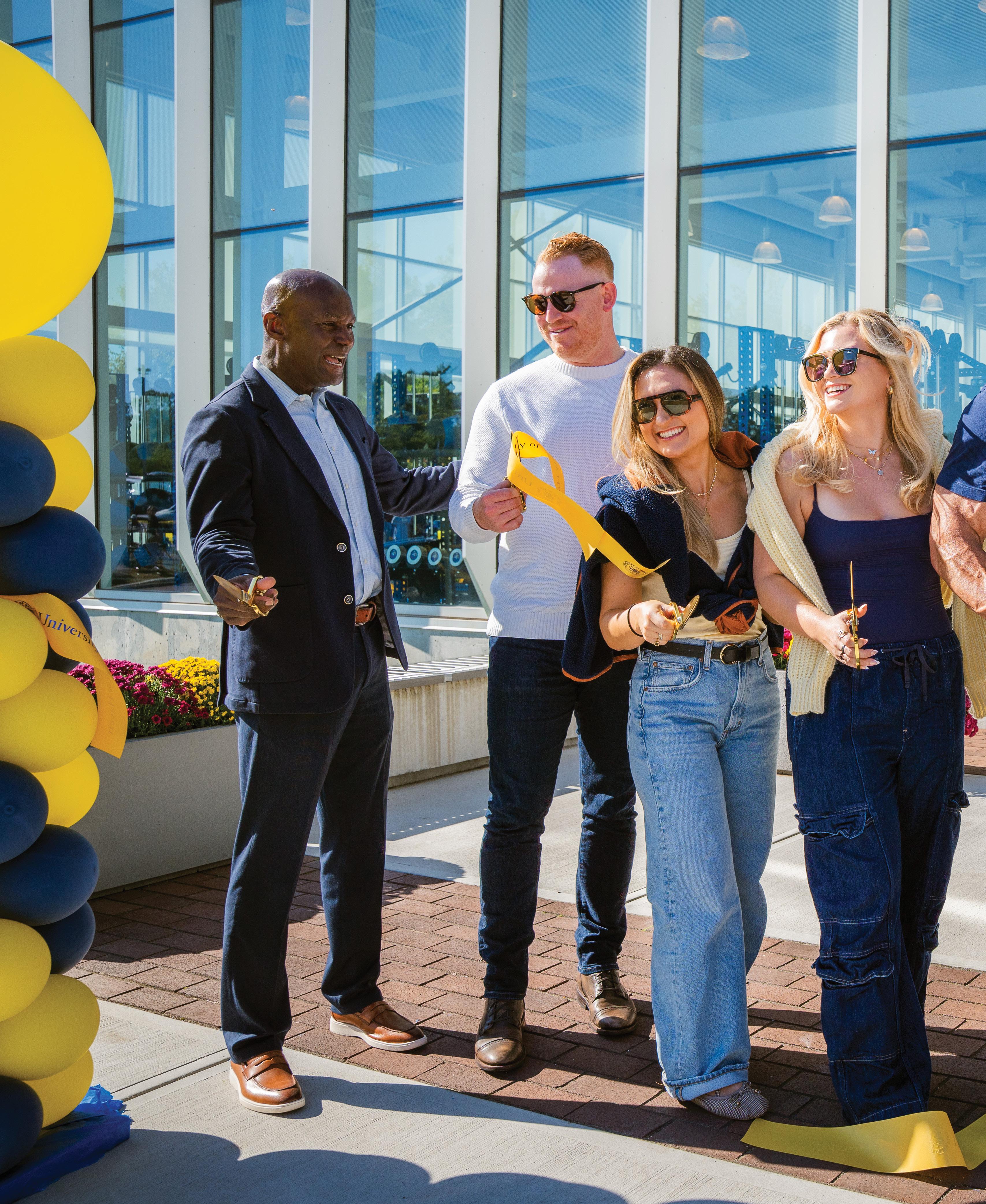 As part of Homecoming Weekend 2025, the University hosted a special ribbon cutting ceremony to officially unveil the Peterson Performance Center. A 30,000-square-foot state-of-the-art training facility, the PPC also features resources for nutrition, mental health and wellness, and personal development. The facility embodies our focus on fostering an environment around Charger Athletics built on one word: care. It is playing an instrumental role in driving our successful transition to Division I athletics. This incredible space was made possible by David Peterson Jr. ’88, ’17 Hon., the vice chair of our Board of Governors, a long-standing University benefactor, and a member of our Charger Athletics Hall of Fame, and his wife, Karen.
