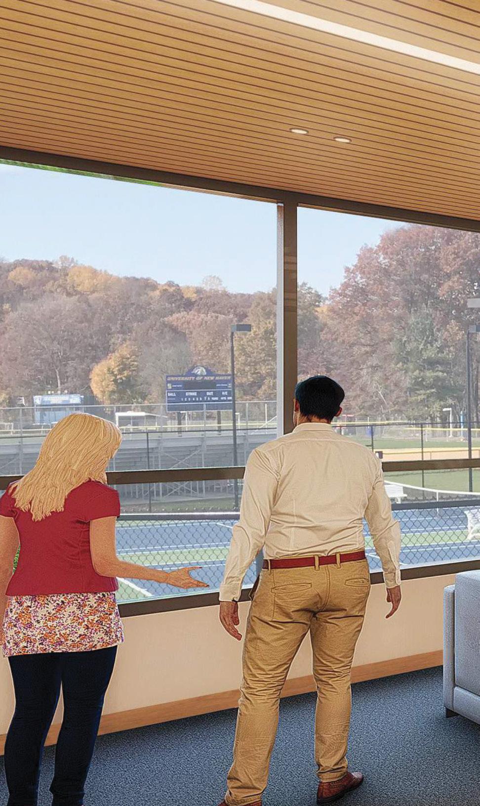 Then there’s the less obvious but impactful giving that continues to benefit generations of U New Haven students. He contributed to the restoration of Maxcy Hall, the University’s centuryold signature building and centerpiece of campus. He supported the construction of the Bergami Center for Science, Technology, and Innovation; the Beckerman Recreation Center; and the Henry C. Lee Institute of Forensic Science. Pompea and Tamera joined former classmate Sam Bergami Jr. ’85 EMBA, ’02 Hon., and his wife Lois in supporting the University’s purchase of its campus in Orange, Connecticut, which has been dedicated as the Bergami and Pompea Graduate Center and is currently home to the College of Business.