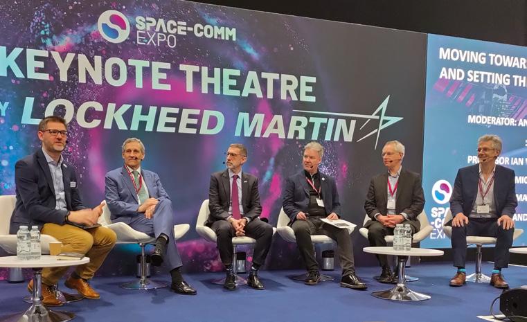 Panel l–r: Andrew Staniland, TAS (Panel Chair); Miguel Belló Mora, Orbex; Andrew Faiola, Astroscale; Ian Williams, University of Southampton; Martin Soltau, Space Solar and Simon Reid, D-ORBIT