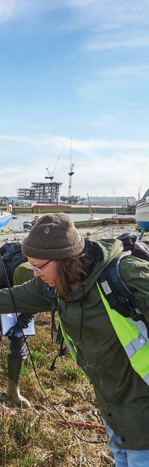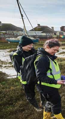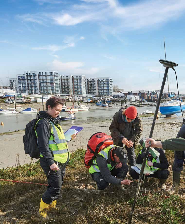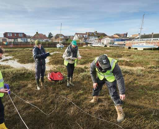 Ecology, environmental and geography finalyear students on a field trip to Shoreham’s Adur estuary led by Dr Ray Ward (pictured with the red backpack). They undertook a survey of the salt marsh identifying plants and assessing vegetation cover present in the area and surveyed changes in geomorphology and sediment deposition. The data they collected was used in a report to the Environment Agency as part of the Shoreham Adur Tidal Walls Flood Defence Scheme monitoring and assessment.