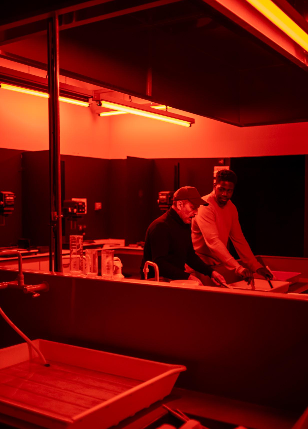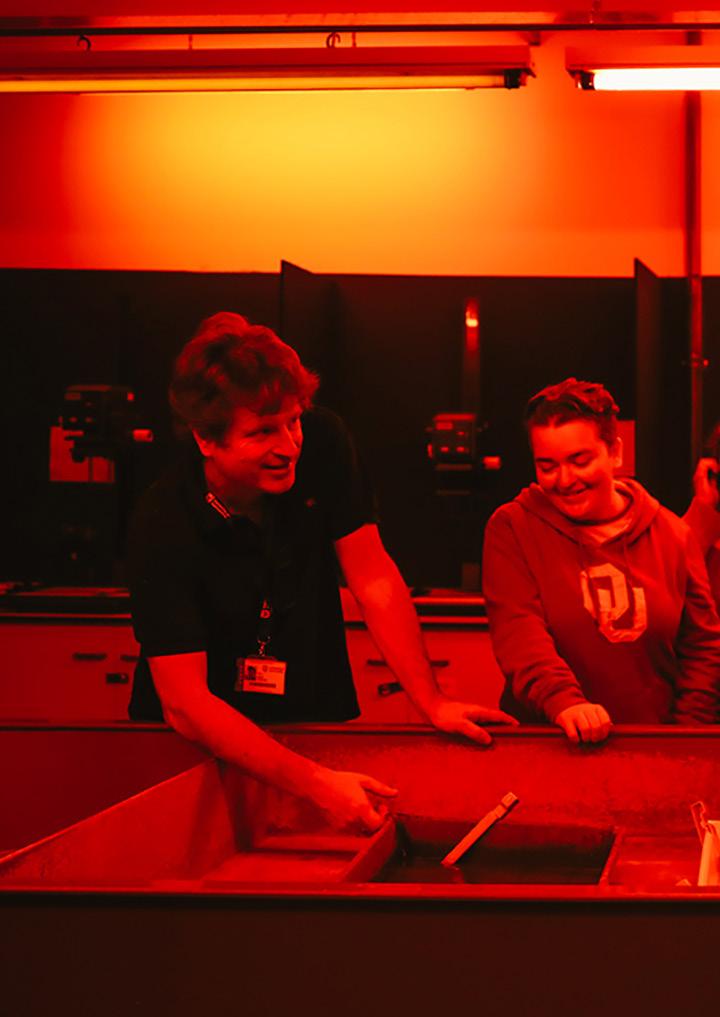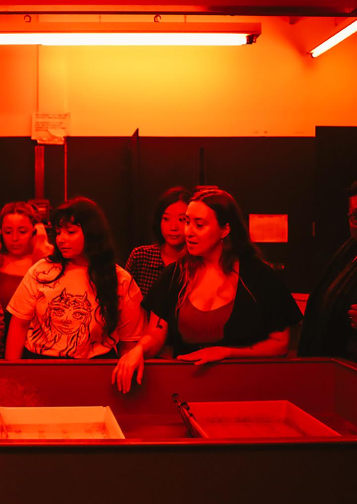 Houses 15 enlargers for black and white printing, allowing users to adjust exposure times and contrast levels.