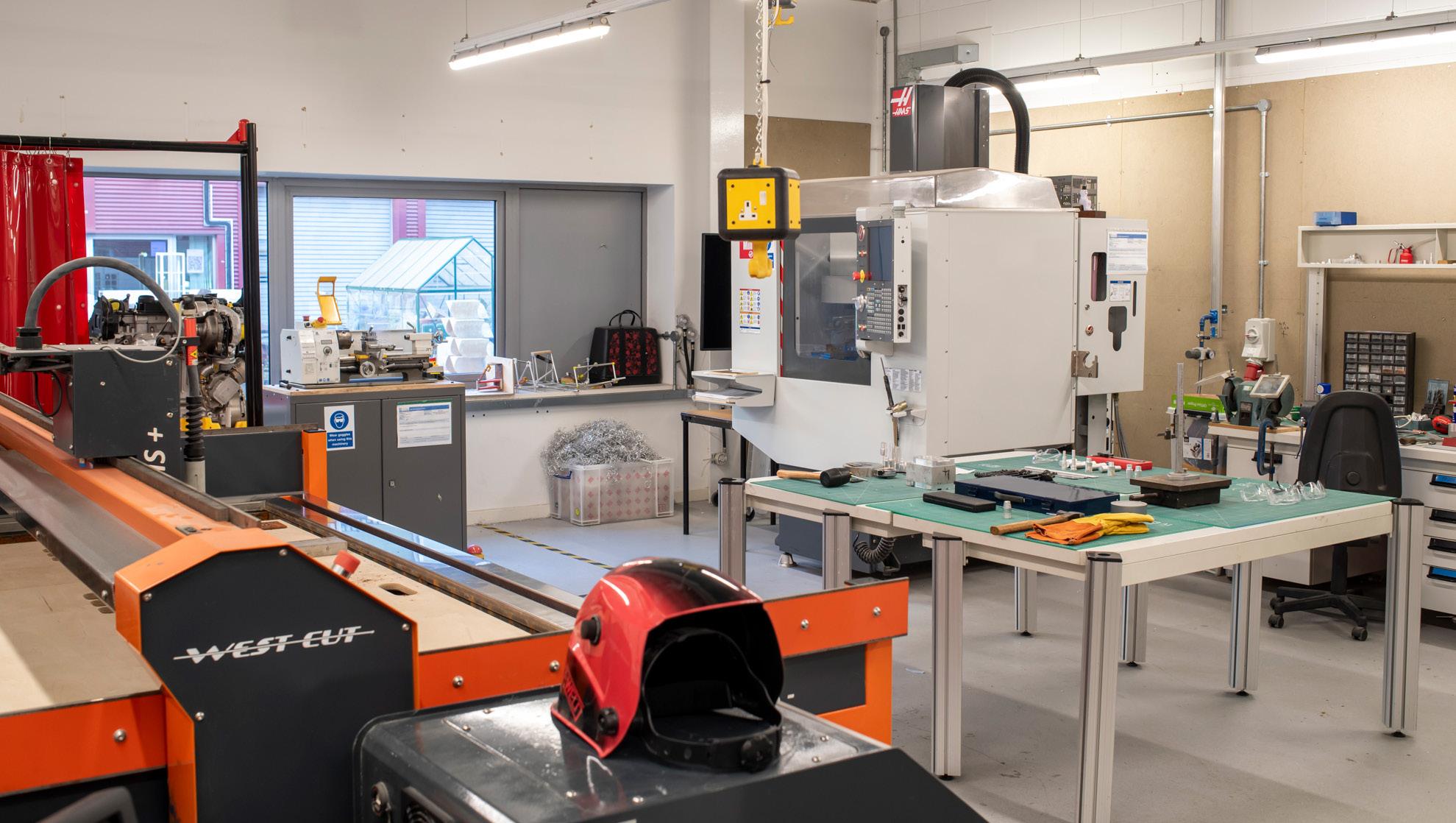 The metal workshop is equipped with a variety of machines for cutting, shaping, and joining metal. This includes three types of welders, such as a TIG welder specifically designed for welding bronze. Additional metalworking facilities include a brazing hearth, a sheet metal folder, a roller, and a guillotine.
