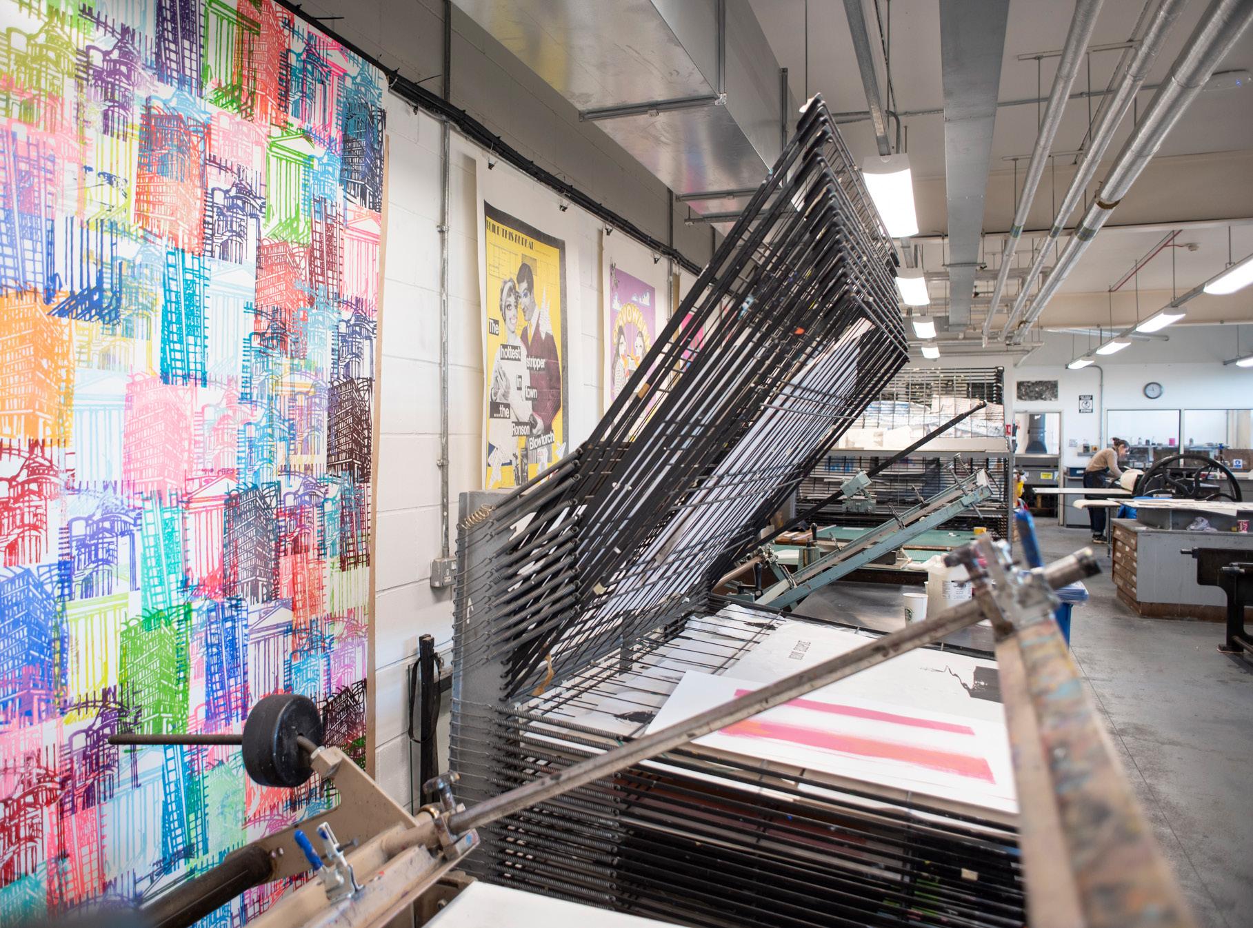 Equipped with a diverse range of tools, including two etching presses, a Beaver press, an offset litho press, four screen beds, and a large exposure unit, the Print Room provides everything needed to bring artistic visions to life. The workshop is divided into two areas: oil-based and water-based printing, each offering unique opportunities for experimentation and expression.