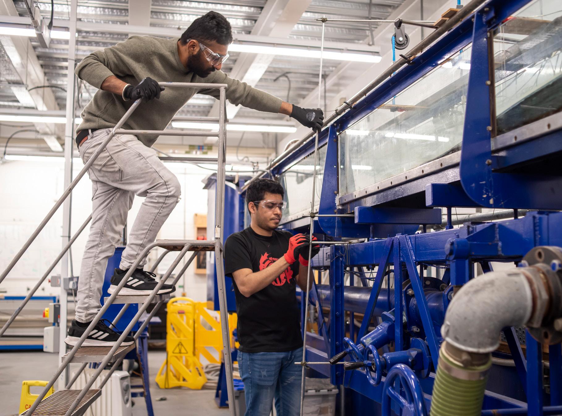 Extreme flood waves’ destructive power exposed vulnerabilities in coastal defences during events such as the 2013-14 winter storms in the UK, 2011 Tohoku and 2004 Indian Ocean tsunamis. This highlights the critical need for improved understanding of extreme flooding and novel coastal engineering design tools. One of the current projects aims to develop a comprehensive understanding of seawall failure threshold under different geometries through a new set of fullycontrolled laboratory experiments. The resulting design guidelines will be applicable to extreme flood-prone regions, as well as areas susceptible to compound floods, storm surges and tsunamis with overflowing flood walls. This will enhance coastal security by improving life safety and providing greater certainty in seawall performance during an extreme overtopping event.