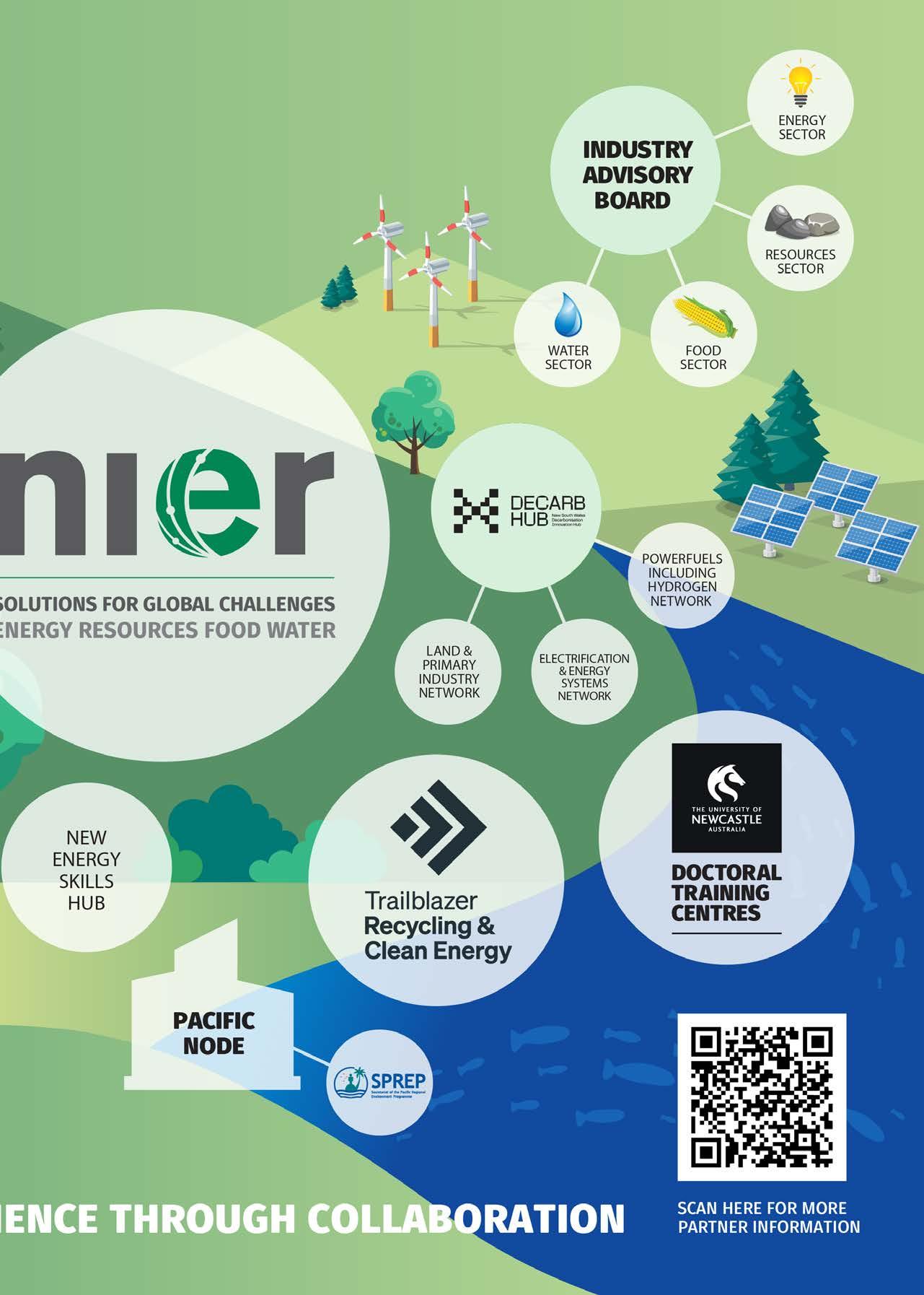 NIER’s engagement in the region is to better understand local drivers and challenges, and to build collective research capacity through new partnerships and collaborations. The NSW Decarbonisation Innovation Hub - with its key focus areas in Electrification & Energy Systems, Land & Primary Industries, and Power Fuels including Hydrogen - recognises significant opportunities to contribute to carbon reduction in the region. The Trailblazer for Recycling & Clean Energy (TRaCE) program is also well-aligned to support renewable energy developments in the region, with focus areas including Next Generation Solar Photovoltaics, Electrification, Energy Systems and Storage, Sustainable Fuels and Chemicals, Recycling and MICROfactories.