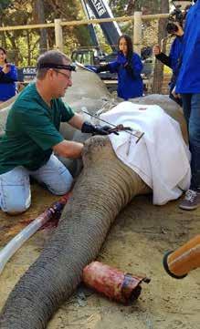 The procedure to remove the tusk, with a root of 35 cm, was made difficult amid Georgia’s ban on the use of opioids, the narcotics used in anaesthetics. Dr Tordiffe was thus tasked with using an unfamiliar drug to ensure the safe sedation of the elephant. Although etorphine is the opiad typically used for the initial immobilisation and maintenance of anaesthesia in elephants, a combination of butorphanol, azaperone and medetomidine (BAM) had to be used in this case. Once the elephant was lying down, additional ketamine and medetomidine drugs were administered to keep the elephant sedated. Dr Tordiffe said that, although BAM had no published studies of use in elephants, he found it particularly effective and would be using it in future procedures. Once the elephant was asleep, Prof Steenkamp used specifically designed chisels to painstakingly loosen the tusk, and then to break it into pieces in order to remove it. Prof Steenkamp has been developing techniques to treat elephant tusks since 1998. Although Grand’s operation was a success, his body condition remains poor and he is underweight. In this regard, the UP team provided the zoo with recommendations for improving Grand’s diet.