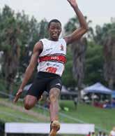 Raditabo wa Tuks Luvo Manyonga (Tuks/hpc) o tšere maemo a bobedi ka tabogo ya 8.23m