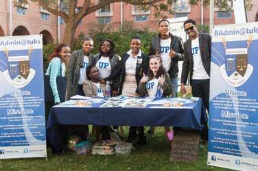 UP has 120 registered student societies ranging from the Debating Society and music groups, to political and religious societies. Then there are choirs, such as the awardwinning UP Camerata Choir and UP Symphony Orchestra. UP also takes sport seriously. While successes in rugby, soccer and cricket are given wide media coverage, you may not be aware of UP’s successes in the so-called minor sports, like rowing, golf and archery, for example. UP boasts with a total of 34 sports codes.