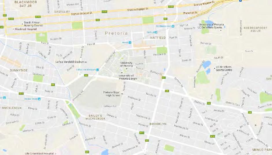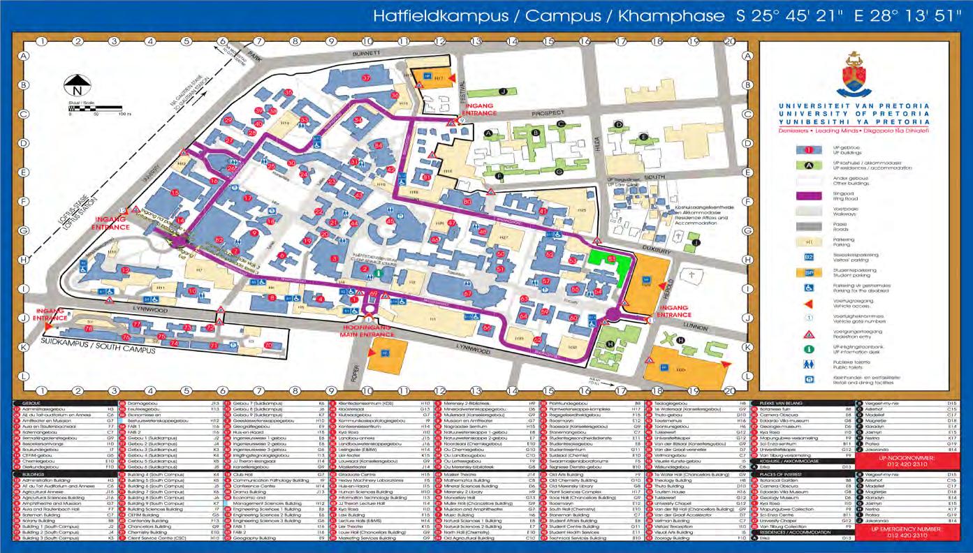 Hatfield Campus, University of Pretoria: GPS coordinates: S25° 45’ 21” E28º 13’ 51”