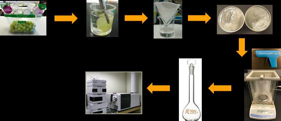 In order to confirm that ozonolysis of oleanolic acid in the solid state produces the same lactone as solution-phase ozonolysis, Smith treated solid oleanolic acid with ozone, purified the product, and identified the product as lactone using NMR and high performance liquid chromatography-mass spectrometry (LC-MS).[14] Navarro exposed epicuticular waxes stripped from grapes and olive leaves to ozone, analyzed the exposed waxes using LC-MS, and confirmed that oleanolic acid in the epicuticular waxes was converted into lactone under exposure to high ozone concentrations.[15] Ramirez did further work to develop a method that quantified oleanolic acid and lactone levels in grape wax. [16] Ramirez stripped the wax from about 250 green table grapes using HPLC grade chloroform, distributed the solution among four petri dishes, and allowed the chloroform to evaporate. She kept one plate in the refrigerator as a control and exposed the other three to Redlands ambient air during the summer of 2020 She repeated the process with red table grapes. For the samples exposed to ambient air over the summer, 2% to 4% of the oleanolic acid by mass converted to lactone. These results confirmed that ambient ozone deposits onto the epicuticular wax of grape skins via reaction with oleanolic acid. However, only six samples over one summer are not sufficient to provide accurate results of non-volatile compounds’ contribution to non-stomatal flux. Further investigation is required to confirm that the conversion of oleanolic acid to lactone is reproducible and could be an important contribution to non-stomatal flux.