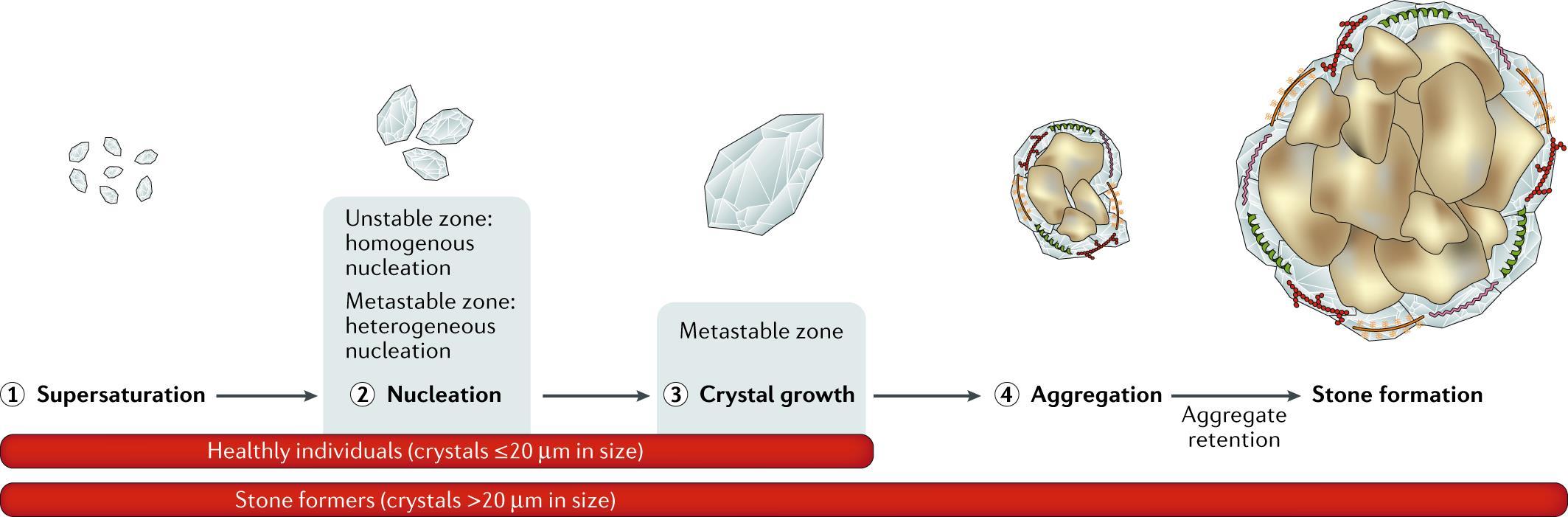 1. Stone formation begins with a supersaturation of stone-causing ions in the kidney or bladder