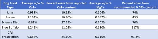 • There is a clear lack of regulation for Ca2+and Mg2+ concentrations in dog foods