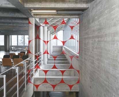 aspects link the Main Building of the University of St.Gallen to the Brutalist style, such as its figurative language and the way it references the urban and regional terrain where it stands. Not only this, but the way the process of construction itself is visualised, the transparency of the floor plan, the function of the spaces external to the buildings and the reliance on una- dorned materials (fair-faced concrete) are important distinguishing features. It is likely that Brutalism was so named in part due to the French term “béton brut”, meaning “raw concrete”.