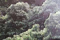 Breuning’s forest is joined by Monica Ursina Jäger’s triptych of collages of photographs and papercuts of Singapore’s natural and urban landscapes. With her extensive experience in the megacity, she has interwoven the region’s forest and green lung in the urban center with the dense and heated silhouettes of skyscrapers (social housing blocks) presented as papercuts. In this multi-layered panorama, the viewer cannot distinguish which one of the two spaces invades the other. In that sense, the title of the series is telling: the intermingled, oscillating “topographies” become ambivalent between urban