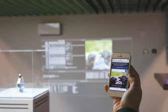 through varied deep-blue tones in cyanotype. Nearby, Valais eco-artist Piaget-Dubuis presents an image of the Rhône glacier, protected with white cloths, placed in a protected niche on the white wall. At the center of her photography is the reaction of nature to climate change, particularly in mountain landscapes.