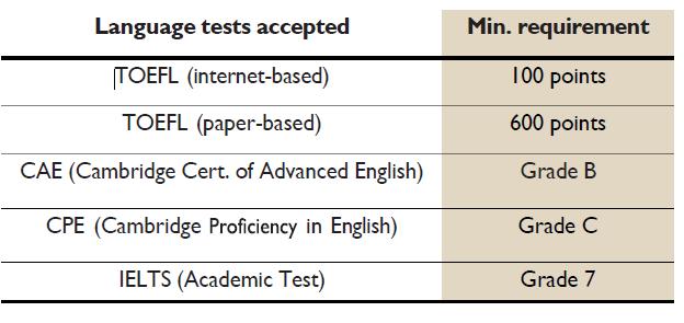 The language test must be less than two years old on the date of the application deadline. Test results must be uploaded in the Mobility-Online portal. In cases where students are native English speakers, the HSG