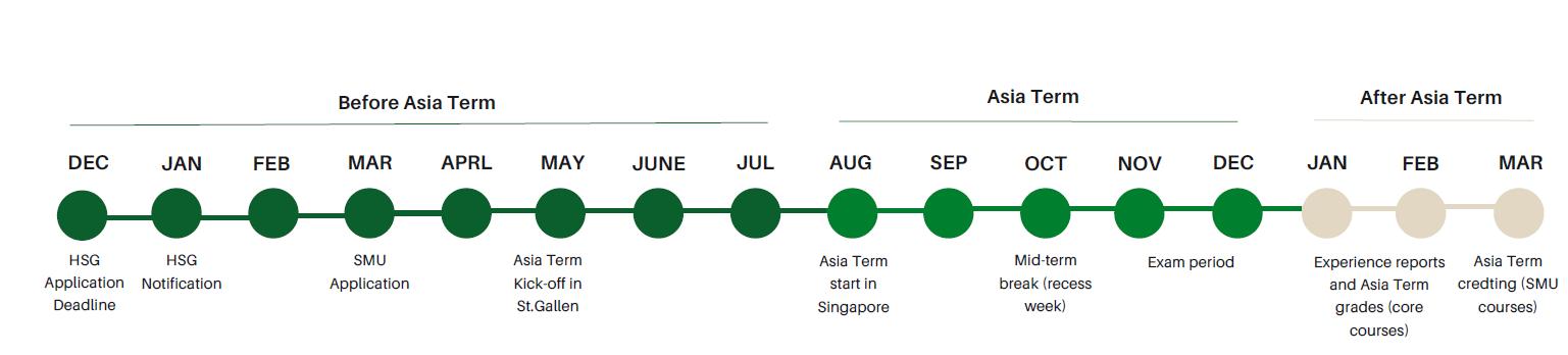 More than 600 students have participated in the Asia Term since its launch in 2003. From August to December, Asia Term students have the opportunity to attend courses together with SMU students offered by SMU and St.Gallen faculty. The goal is to help students gain a deeper understanding of doing business in Asia and enhance their teamwork and inter-cultural skills through close collaboration with their fellow Asian students and companies in Singapore and the region.