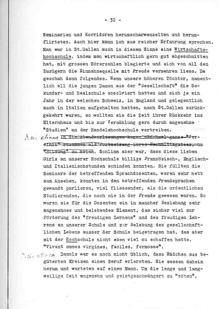 Bei der HSG ist es mit dem Gendern allerdings manchmal so eine Sache. Bis 1 986 waren alle Professoren Männer, und auch danach gehörte in manchen Jahren nur eine einzige Professorin zum Kollegium. Um der historischen Wahrheit Genüge zu tun, verwende ich daher für bestimmte Epochen das (echte) Maskulinum.