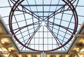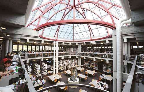 Unter der grossen Glaspyramide und einer kuppelförmigen Stahlträgerkonstruktion befindet sich die Bibliothek
