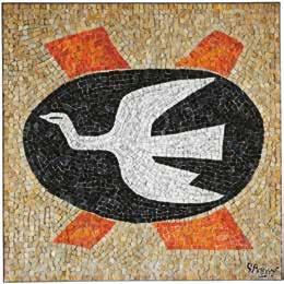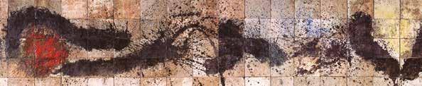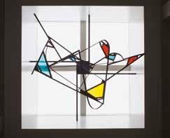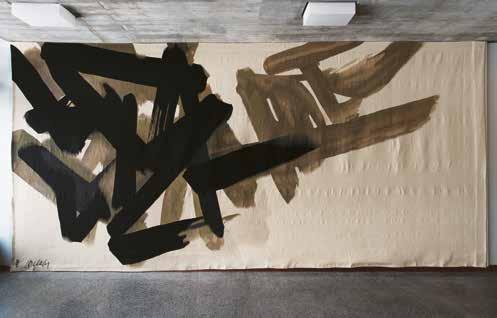 Die prima vista wilde Gestik von Soulages‘ grossen Pinselstrichen stellt sich bei näherer Betrachtung als minutiös kontrolliert, ja millimetergenau konstruiert heraus. Seine schwarzen – Kalligraphien ähnliche – Zeichensetzungen schaffen nebenbei eine Verbindung zu den Formen auf Joan Mirós Fries aus Kacheln. Jeder unserer Schritte auf der Treppe verändert Alexander Calders (bereits in sich bewegliches) Mobile oder Gottfried Honeggers Pliagen im Betrachterauge zum nie abgeschlossenen work in progress. Auch über die Formen, Motive oder Kunstgattungen lassen sich Verbindungslinien zwischen den Werken ziehen. Calders organische Gebilde aus Stahlblechteilen verweisen auf Felice
