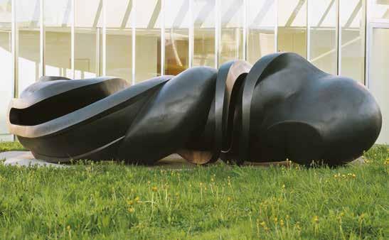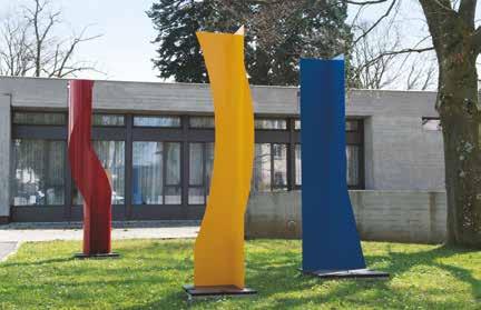 Varinis rote Formen und auf Alicia Penalbas Beton-Flügel auf dem Rasen vor dem Hauptgebäude und diese auf Hans Arps «Schalenbaum» in nächster Nähe, der wiederum korrespondiert mit François Stahlys «Brunnenbaum» oder Tony Craggs Bronze «Ourea».