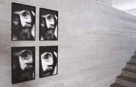 Im Zusammenhang mit den Bildern von Hubbard & Birchler im Untergeschoss des Hauptgebäudes verdient die Fotografie des berühmten Henri Cartier-Bresson, der in den Sechzigern die ihn faszinierende, frei hängende Betontreppe des Förderer-Baus inszenierte und ablichtete, eine besondere Erwähnung. Die eindrückliche Schwarzweiss-Fotografie, die in der Schweizer Zeitschrift du (1967, Nr. 8) abgedruckt wurde, setzt den konkreten Treppenraum mit vier sich scheinbar zufällig begegnenden Männerfiguren so kunstvoll in Szene, dass die Inszenierung nicht nur an Oskar Schlemmers berühmte Bauhaus-Treppenbilder, sondern auch an die artifizielle Stimmung von Alain Resnais‘ Film L‘année dernière à Marienbad (1961) erinnert. Eine zusätzliche Dimension dieser Stimmung steuerten Iwan Baans Fotos der Jubiläums-Kollektion von Akris bei, die der weltbekannte Architekturfotograf