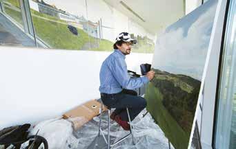 zusammen mit bildtragenden Motiven und pointierten Details – der Künstler überliess nichts dem impressionistisch Zufälligen und verführt die Gäste und Studierenden vor Ort mit seinem facettenreichen Bild-Aperçu der Bildungsstätte.