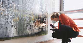 Querverbindungen zwischen den einzelnen Werken ablesen. Als Beispiel sei die mögliche Einflussnahme der Bewegung des Betrachters auf das Werk angeführt. Aus der Distanz wirken Gerhard Richters und Yan Pei-Mings Gemälde oder Pierre Soulages Wandteppich so gänzlich anders, als wenn man sich deren Mal- bzw. Webetechnik aus nächster Nähe anschaut. Eine sich spiegelnde Landschaft löst sich unmittelbar vor dem Gemälde in eine komplexe Struktur aus mehreren Farbschichten auf.