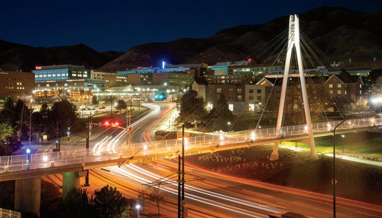 Constructed for the 2002 Olympic Winter Games, the George S. Eccles Legacy Bridge facilitates pedestrian traffic between the University of Utah’s main campus and health sciences campus.