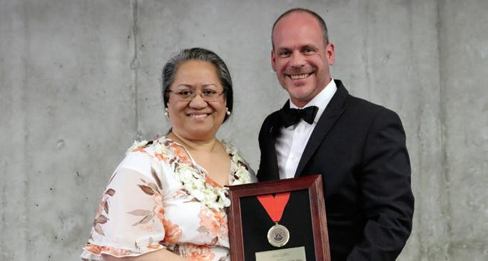 presented Dr. Vakalahi with the Dean’s Medal in March 2024. The honor is the most significant awarded to a person whose exceptional service has proven to be of consequence to the College of Social Work.