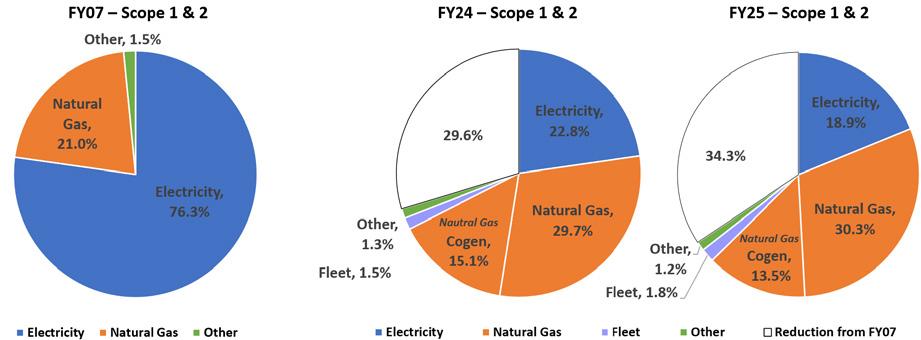 • 43% reduction in total emissions per full-time equivalent students, faculty, and staff since 2007