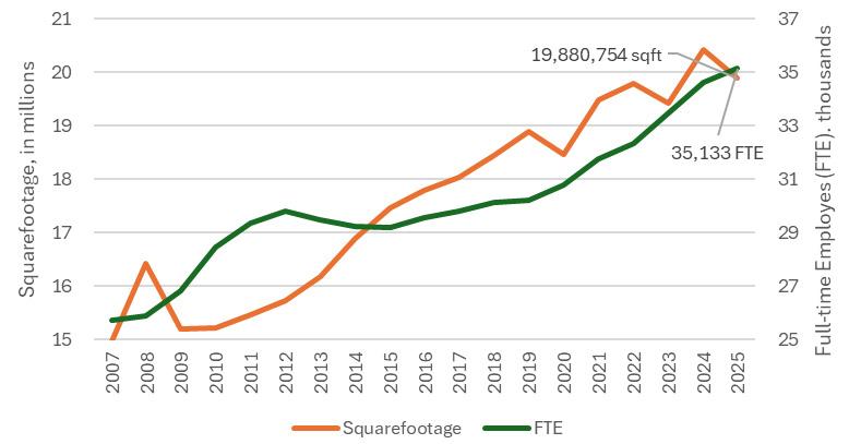 • 42% decrease in total emissions per square foot since 2007