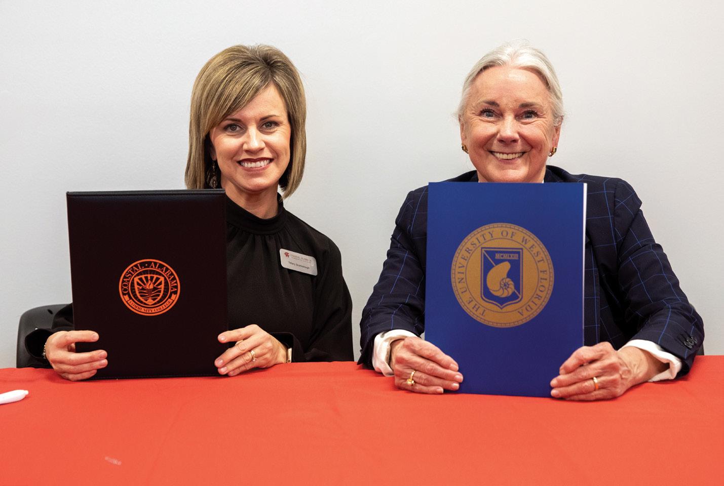 Coastal Alabama Community College and UWF celebrated the launch of a new agreement that provides a seamless transition from CACC to UWF. The agreement guarantees acceptance for graduates of the Associate of Applied Sciences in Registered Nursing and AAS in Medical Laboratory Technology programs at CACC into the Bachelor of Science in Nursing and B.S. in Medical Laboratory Sciences programs, respectively, housed in UWF’s Usha Kundu, MD College of Health.