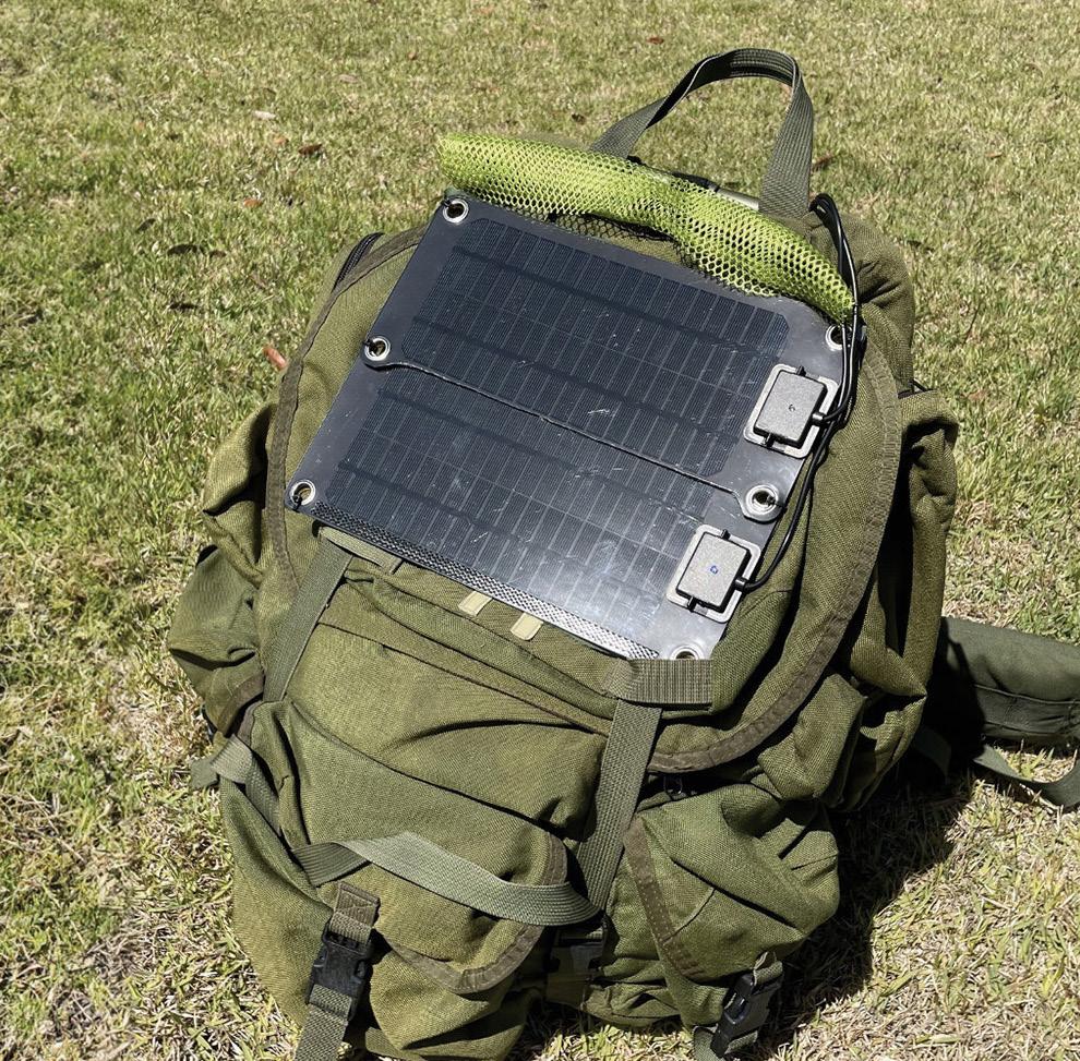 THE RUCKSACK created by UWF students provided a better method of charging batteries for the electronics soldiers carry in their rucksacks as they trek through the jungle.