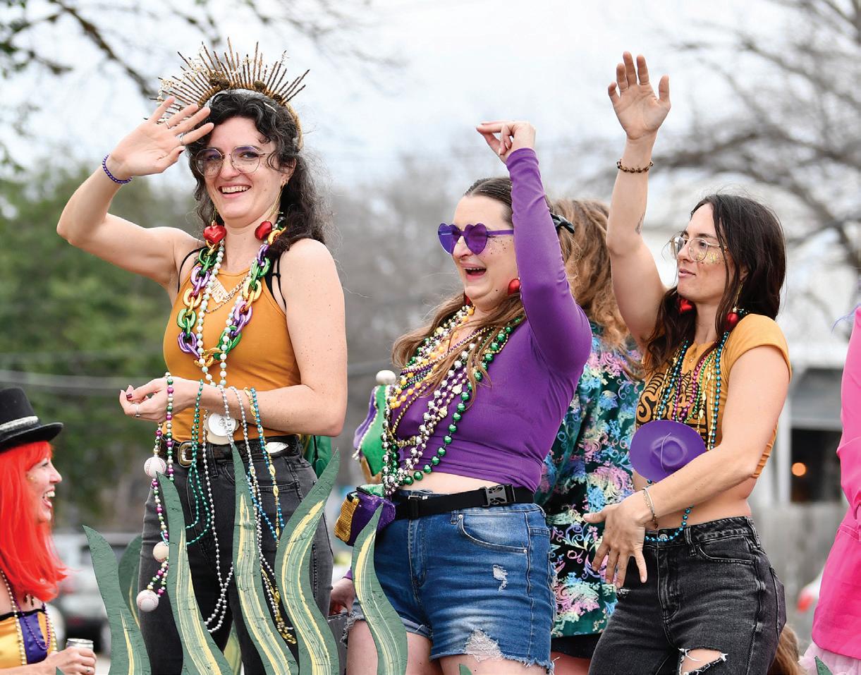 San Marcos locals participate in the Annual Mistick Krewe of Okeanos San Marcos Mardi Gras Parade, Saturday, Feb. 14, 2026, in Downtown.