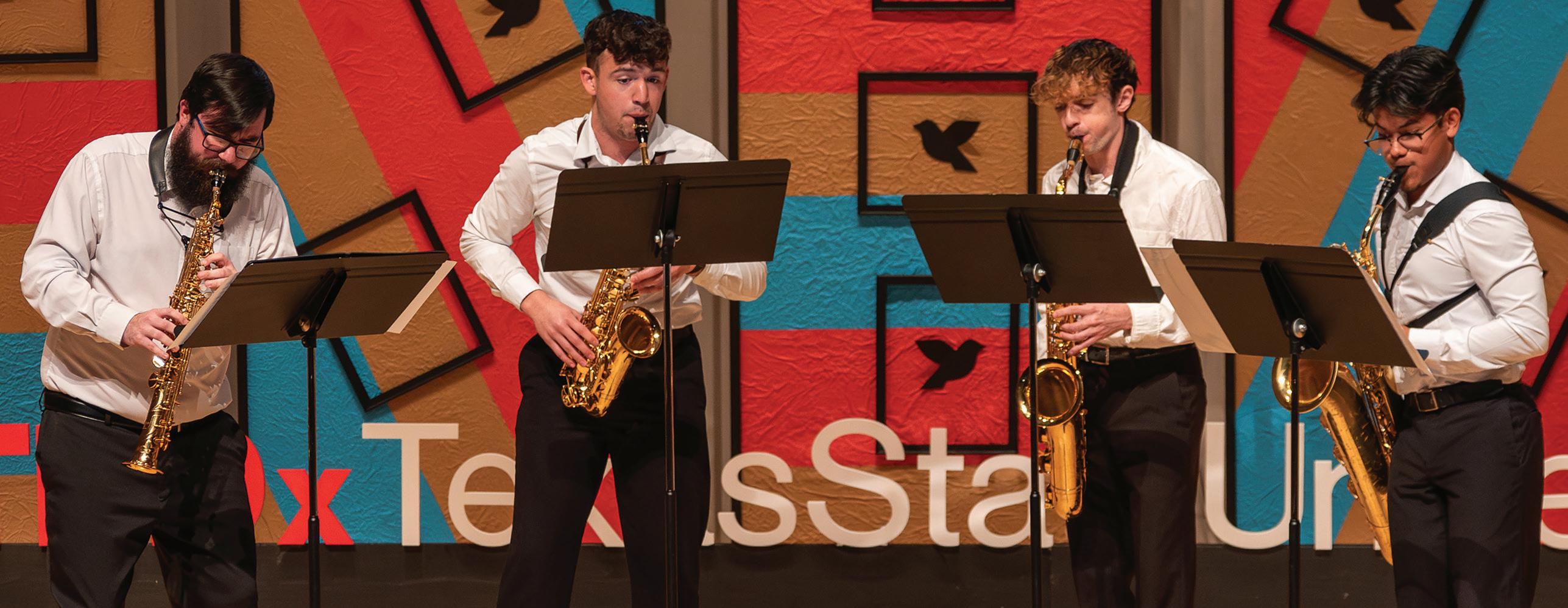 Musicians, educators and music judges filled the Gonzales Convention Center for the Chronos Saxophone Quartet’s performance at one of the biggest state-wide music conventions. As whispers in the audience faded away, the members of Chronos raised their saxophones to their lips.