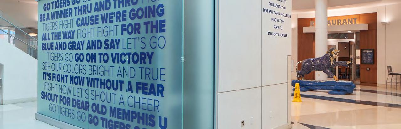 Campus spaces should reflect and reinforce the University of Memphis brand. Incorporate Memphis Blue and Memphis Gray, utilize graphic elements, or prominently display the University logo to craft inspiring environments that generate excitement and foster affinity. Environmental branding is an effective way to showcase our University while creating a cohesive, welcoming experience.