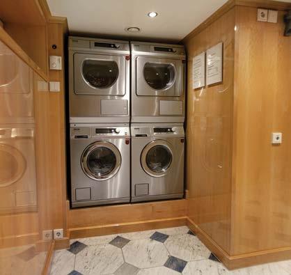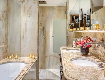 Other high-end amenities include a generous amount of closet space, under-bed storage, a flat-screen television with a wide selection of on-demand movies, individual climate control, bottled water replenished daily, fresh fruit and flowers upon arrival, makeup mirrors, and universal electrical plugs.
