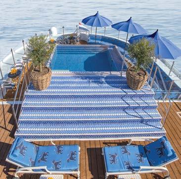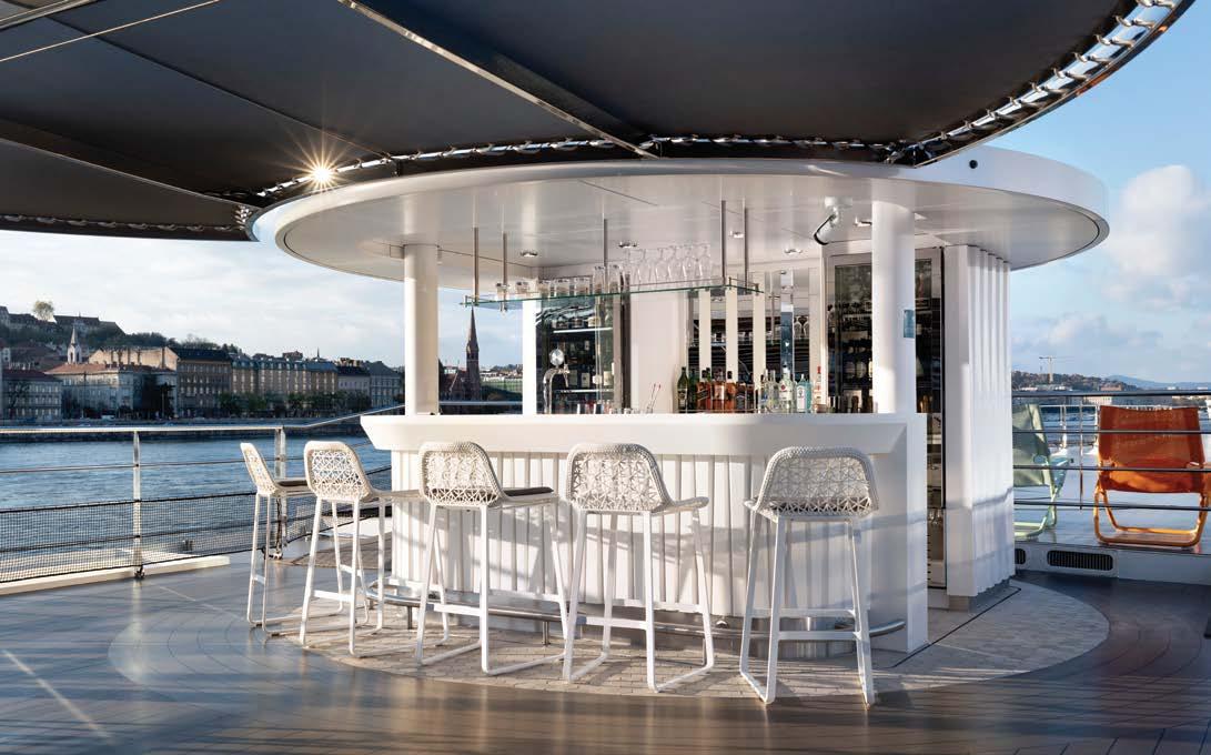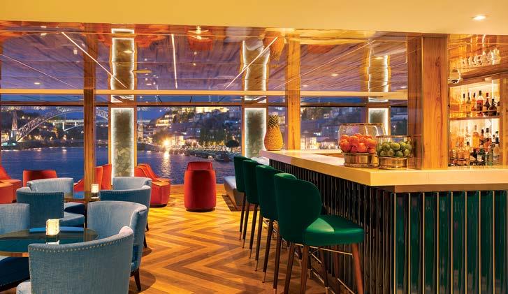 The S.S. Bon Voyage is designed to seamlessly immerse guests in the culture, art, and wine of France. A stunning lobby clad in polished wood, subtle brass details, and a hand-crafted balustrade lend uncommon elegance, while the stylish sun deck boasts the river cruise industry’s first and only infinity pool. An onboard bar lounge, Le Salon Champagne, is resplendent in chic emerald tones with a design inspired by Yves Saint Laurent’s personal abode, Villa Majorelle. In addition to the public spaces, the S.S. Bon Voyage features four spacious suites, and every stateroom features an exquisite marble bathroom. TRANSFORMATION