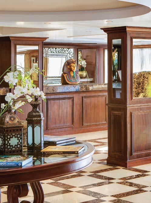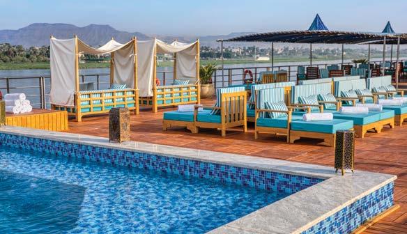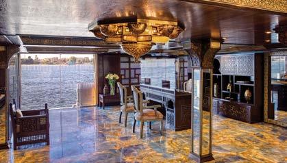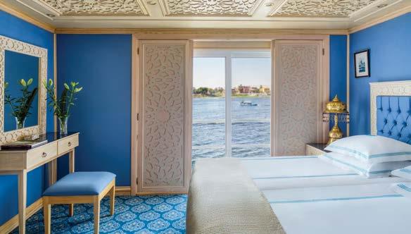 This Super Ship offers an immersive onboard experience, with bespoke décor by local artisans and materials sourced regionally—such as fine Egyptian cottons, marble and hand-carved blonde wood—to highlight Egyptian craftsmanship while minimising our carbon footprint.