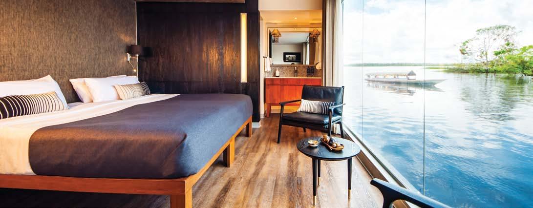 Designed to explore the heart of the Peruvian Amazon in luxury and comfort, the Aria Amazon is an all-suite ship with floor-to-ceiling windows, giving you a full view of the majestic rivers and rainforest. The top deck features a jacuzzi, indoor lounge & bar, and an outdoor observation deck.