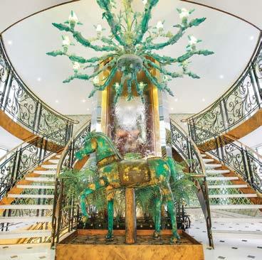 Uniworld is committed to building a fleet of ships that represen ts the absolute best in luxury river cruising, combining qualit y craftsmanship with high-tech innovations and custom-designed interiors. The S.S. Catherine continues this proud tradition of excellence with sumptuous materials and meticulous attention to detail. The vessel’s exquisite interiors include a two-story lobby with a specially commissioned Murano glass chandelier and whimsical life-size glass horse by Pino Signoretto.