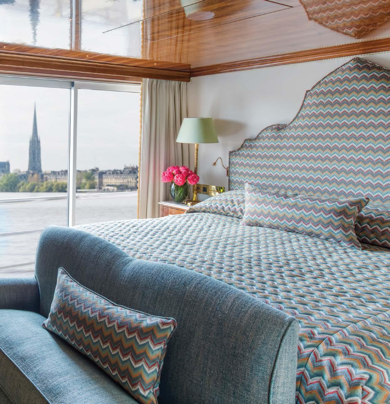 S.S. Joie de Vivre brings the “joy of living” to the rivers of France. Step aboard your floating pied-à-terre in Paris, featuring handcrafted furniture and fine antiques, original artwork, and signature accents inspired by 20th-century Parisian design blended seamlessly with modern conveniences. The Super Ship’s attention to detail is unmatched, with fabrics and upholstery some of the most esteemed design houses in Europe.