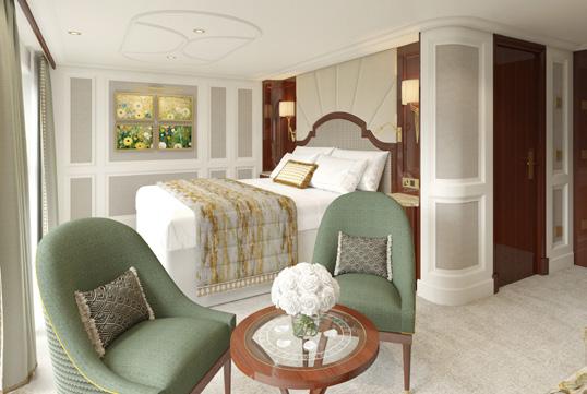 • Elegant and well-appointed staterooms and suites with the finest linens, towels and Savoir® of England beds