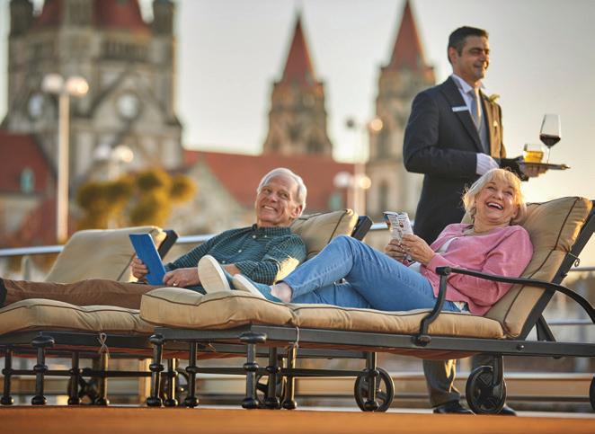 Compared to ocean cruising, a river cruise ship is smaller and off ers guests a far more intimate experience. With just an average of 120 guests onboard, you can get to know your fellow travelers and receive better access to the incredible staff onboard.