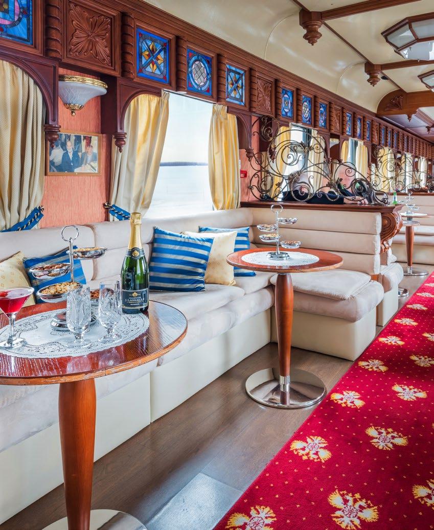 Relax in the bar lounge cars to mingle with your fellow guests, sip on an included cocktail, and watch the world glide by outside the window. Every day, your train will stop in new destinations for unique and immersive local experiences.