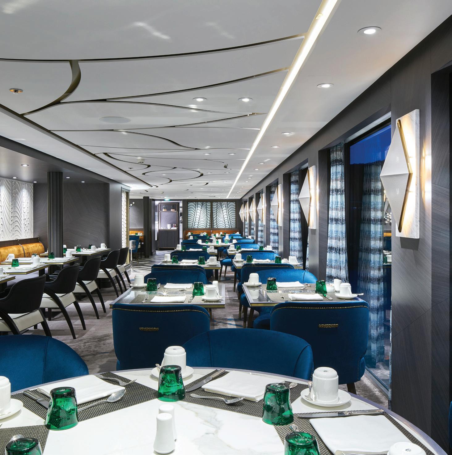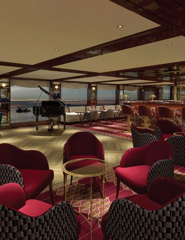 The S.S. La Venezia offers a vibrant yet sophisticated discovery of Venice and its s urrounding islands, and stands witness to Italy’s incomparable architecture, artistic contributions, world-renowned fashion, and famed cuisine. The redesign of this Super Ship TM drew influence from the fine Fortuny fabrics displayed prominently onboard. Murano glass, gilded accents and artistic etched elements pay homage to popular Venetian aesthetics of the early 20th century.