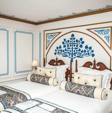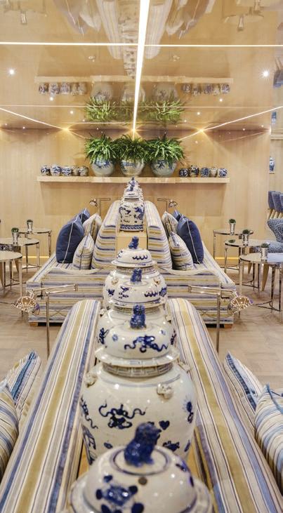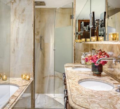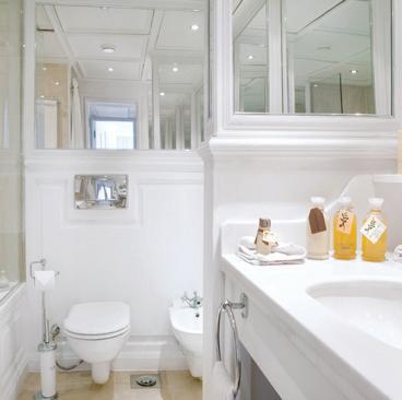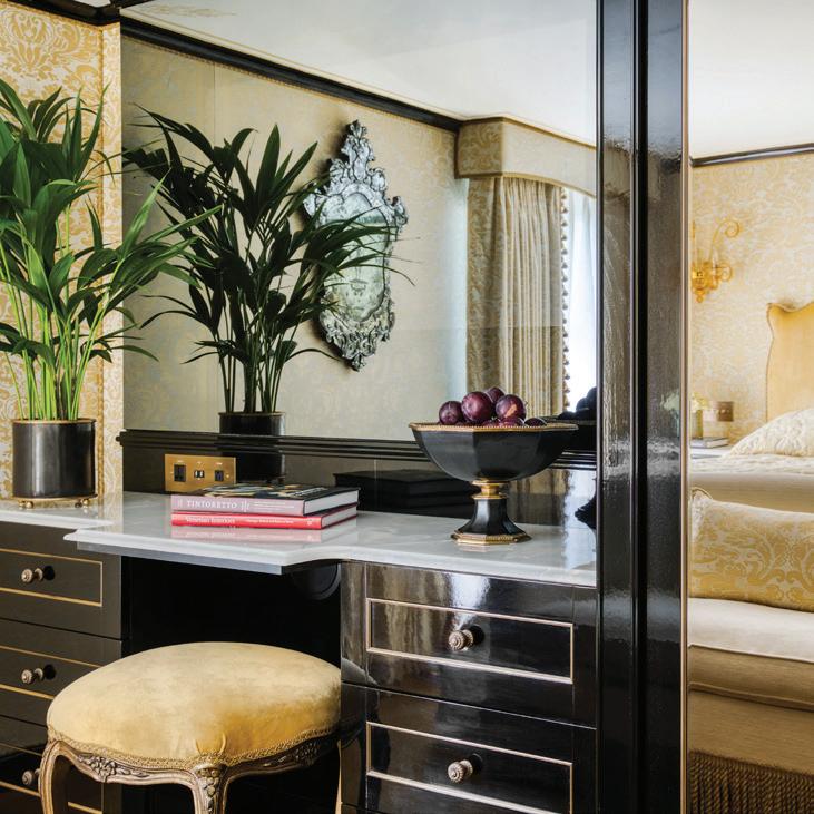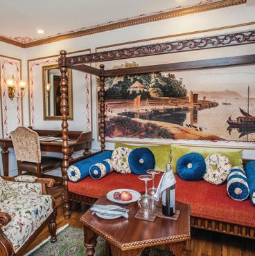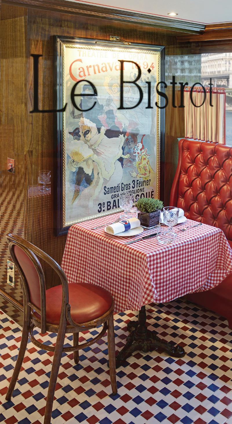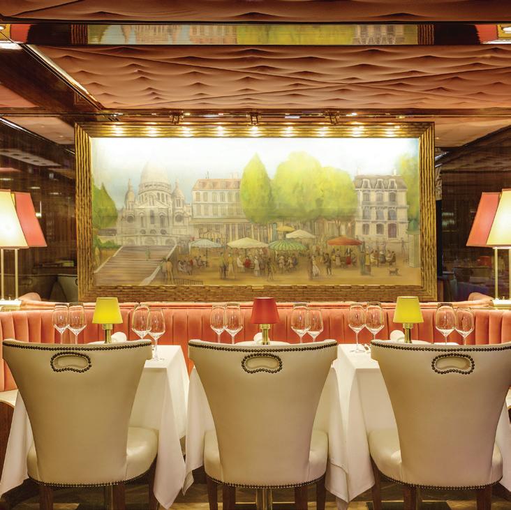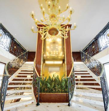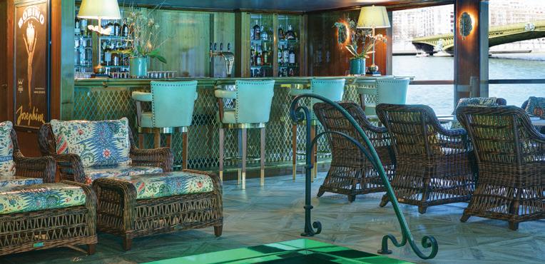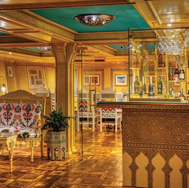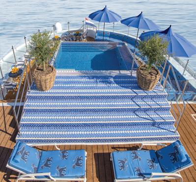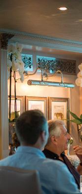 The luxurious décor of the 443-foot, 152-passenger S.S. Antoinette—Uniworld’s first Super Ship TM—features fine Brazilian marble on the walls and floors, a 19th-century Venetian glass mirror, a stylish Bar du Leopard with full-service bar, and an onboard cinema. The twostory foyer boasts a 10-foot blue Strauss Baccarat chandelier with huge sapphires—a stunning piece that once hung in New York’s famous Tavern on the Green—and a collection of original artwork is displayed throughout the ship.