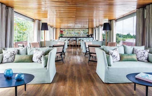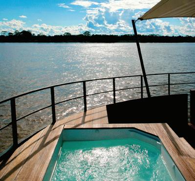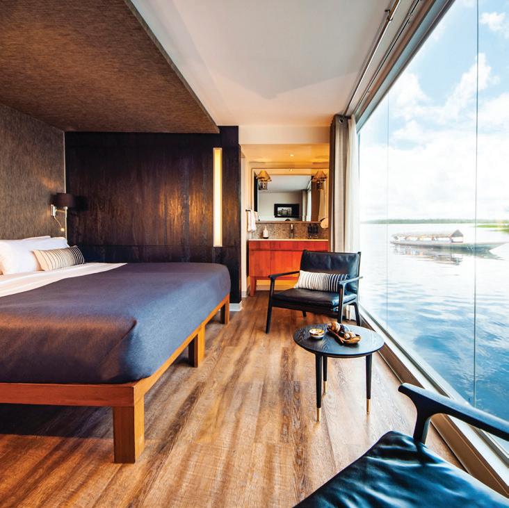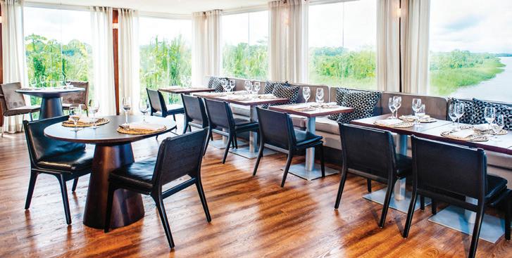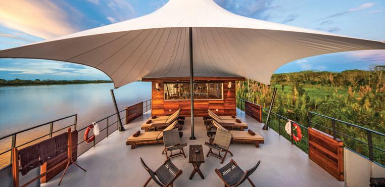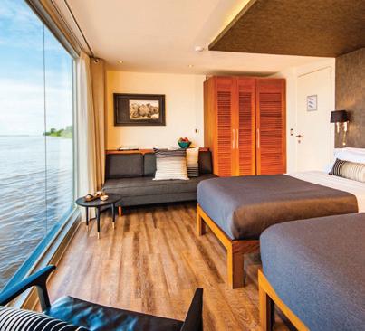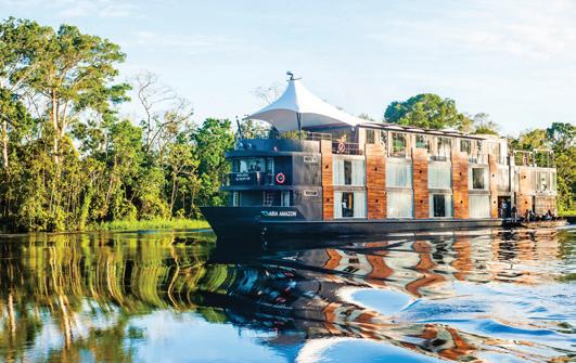 Designed to explore the heart of the Peruvian Amazon in luxury and comfort, the Aria Amazon is an all-suite ship with floor-toceiling windows, giving you a full view of the majestic rivers and rainforest. The top deck features a jacuzzi, indoor lounge & bar, and an outdoor observation deck.
